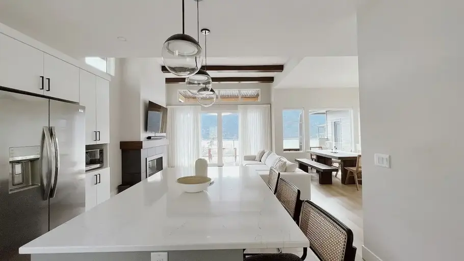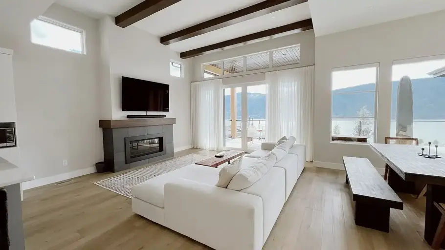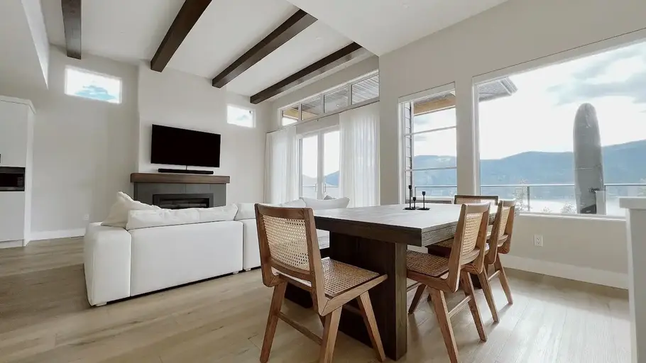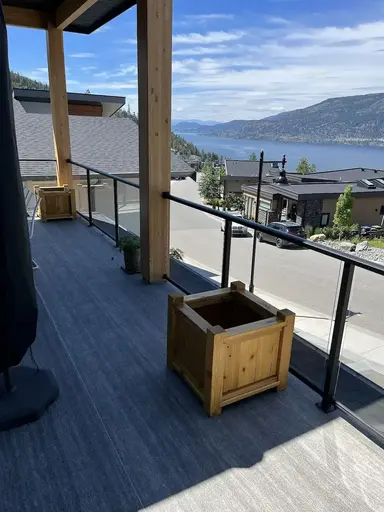 This house is fully furnished and is available from Sept 1st 2025 to April 30th 2026 so strictly 9 months. The remaining 3 months (June/July/August) is used by our family.This is a new house with construction completed on May 12th 2022 and has many outstanding modern features. The Heat Pump and other improvements make this new house a STEP 4 LEVEL (out of 5) energy-efficient home with superb room temperature control and excellent air quality. The neighbourhood has private access to the beach. Bedrooms - 1 Kingsize bed and two queen-size beds in the other two rooms. The Main bedroom has an ensuite bathroom and spacious his and hers clothing closets.The views of the Lake Okanagan are fabulous and to dine outside on the patio in the evenings is quite the experience.The house has a secondary suite with it's own side entry and is presently rented. The house is about 15 minutes to downtown Kelowna and about 8 minutes from the Airport and the University.References required. The rent also includes utilities water/gas/electricity.Two-car covered garage and room for a small boat/trailer at the front.Pet friendly.All kitchenware, pots/pans/ glasses/plates/cutlery are provided as well as linen/pillows/duvets/towels etc.Level 2 Flo EV Charger available inside the garage.
