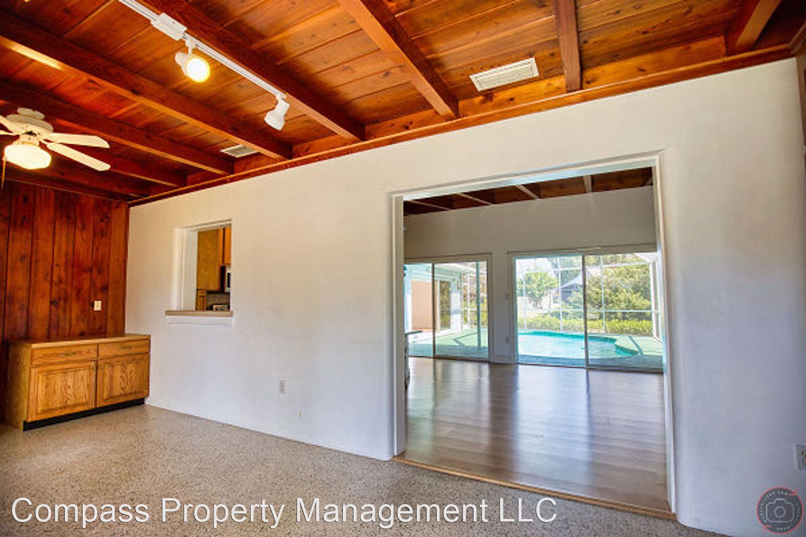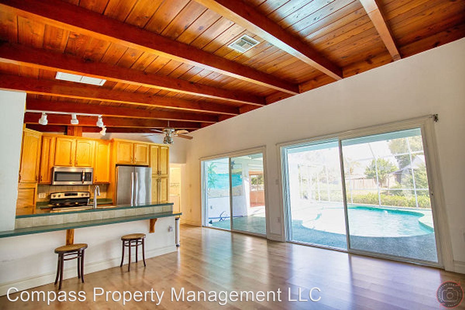 Annual Unfurnished Pool Home on Shakett Creek and Conveniently located to the Legacy Trail! - Annual Unfurnished Pool Home – Waterfront located on a Nokomis Cul-de-sac, with Dock & Canal exposure for venturing off in a kayak, docking your boat, or fishing. This comfortable Split floor plan provides two bedrooms, two Bathrooms, an Office, two car garage, and just over 1,600 square feet of living space. The exposed wood & beam ceilings add a warmth throughout with a floor plan that can accommodate an extra living area or dining area for entertaining. The extended living room opens to the kitchen and pool area for additional Florida living. The master bedroom is spacious with large sliders opening to the pool, a walk-in closet for his & her entry, and adjoining master bath with walk-in shower. As a split plan the guest bedroom is nicely situated to the guest bathroom that offers a shower & tub combination. The laundry closet is complete with cabinetry, a utility sink and a full-sized washer and dryer for your convenience.