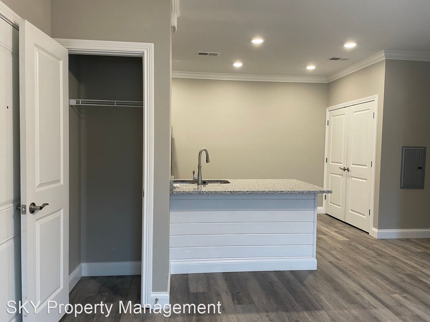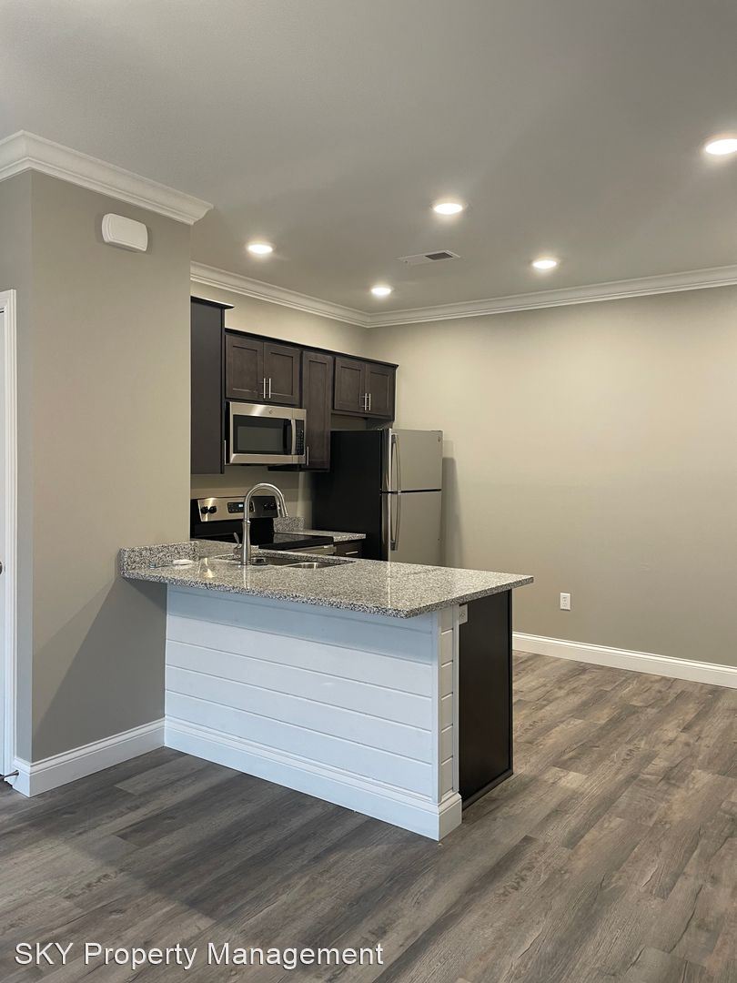 The Flats - Second-Floor Open Concept Flat Stainless Steel Kitchen Appliances Granite Counters Side by Side Washer and Dryer Connection Hardwood Laminate Throughout Patio with Outdoor Storage Closet